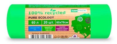 Пакеты для мусора биоразлагаемые 60 литров, 12 мкм, 20 шт. ПНД, зеленые