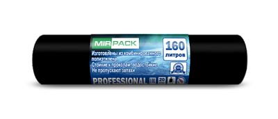 Мешки для мусора 160 л, 35 мкм, ПВД, черные 2 слоя (в рулоне 20 штук, 93x110 см) Professional