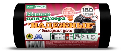 Мешки мусорные 180 литров, 35 мкм, 25 шт, ПВД черные
