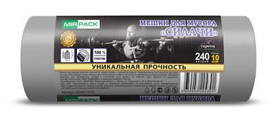Мешки для мусора 240 л, 40 мкм, ПВД, в рулоне 10 шт, 110х150 см, Силачи, серые, прочные, 2 слоя