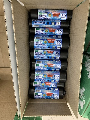 Мешки для мусора 30 л 7 мкм , черные GreenClean (ПНД, в рулоне 30 шт, 50х60 см)