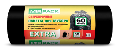 Пакеты для мусора 60л, 50 штук, 12 мкм, ПНД, черные, 60х70 см, особопрочные, Extra