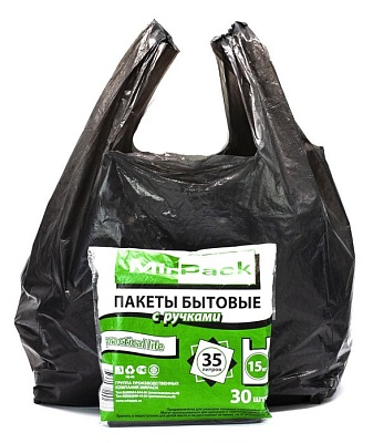 Мешки для мусора 35 л, с ручками, 30 шт. ПНД, 14 мкм.