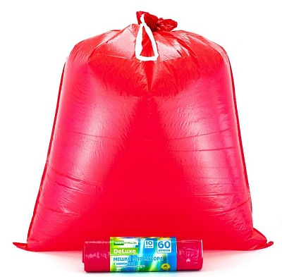 Мешки для мусора с завязками 60 литров, 35 мкм, 10 штук, ПCД, красные