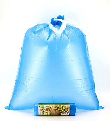 Пакеты для мусора с завязками 35л, 15 мкм, 15 шт, ПНД, синие, с ручками