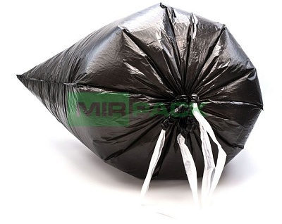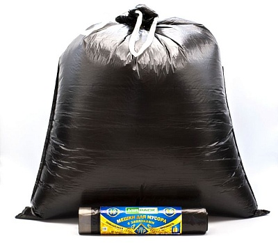 Пакеты для мусора с завязками 60 л, 15 мкм, 10 штук, ПНД, для среднетяжелого мусора прямое дно + ленты для затягивания, черные