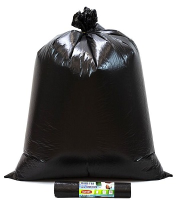 Мешки для мусора 130 литров 40 мкм, черные, 2 слоя (ПВД, в рулоне 10 штук, 93x110 см)
