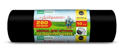 Мешки для мусора 280 литров, 100 мкм, 10 штук, ПВД, 93x140 см, черные
