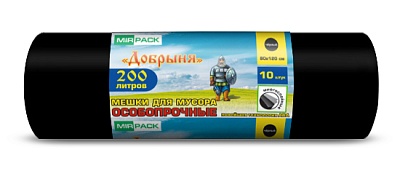 Мешки для строительного мусора 200л. 100 мкм, 10 шт. 80x120 см, черные